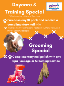 Spa/ Grooming- Complimentary nail polish with any spa package or groom package.
